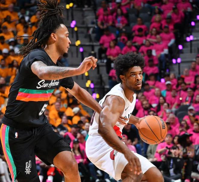 而馬刺不僅有文班,外線核心??怂挂彩侨餍撬降那騿T,在國王隊當過這么多年老大,帶隊經驗豐富。并且,福克斯一直以來還具備大心臟屬性,擅長打關鍵球,季后賽這種強硬對局也能有所發(fā)揮,這么來看今年馬刺爭冠真的很有戲。另一邊的開拓者,可能是今年季后賽球隊當中,最冷門的一支,他們沒幾個明星球員,賬面實力看起來差了許多,卻硬生生打進季后賽,主要原因在于阿夫迪亞進步太快了,這名鋒線沖擊力十足,不懼對抗,此前的附加賽中,阿夫迪亞就轟出了41分12助攻的大號兩雙數(shù)據。