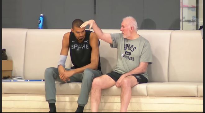 雖然中風(fēng)導(dǎo)致左手不能動(dòng)彈,但波波維奇依舊經(jīng)常出現(xiàn)在馬刺的訓(xùn)練營。