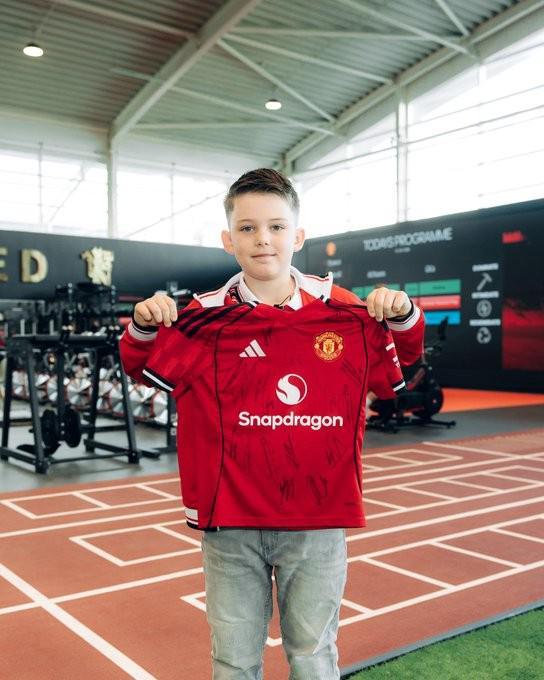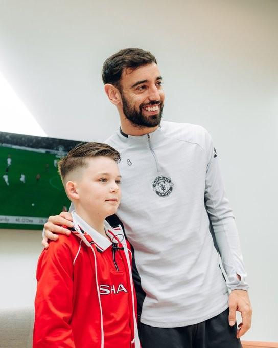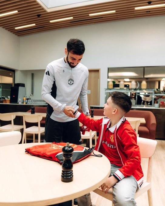 羅文-斯臺普頓還給B費和他的家人帶來了禮物,隨后,獲贈一件印有自己名字的主場球衣,還有一件球衣將由曼聯(lián)一線隊隊員簽名,還與自己最喜歡的曼聯(lián)球星合影留念