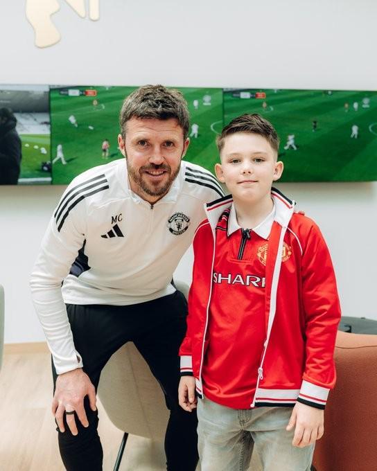 曼市一8歲慈善網(wǎng)紅受卡里克邀請?zhí)皆L卡靈頓,獲贈曼聯(lián)球衣